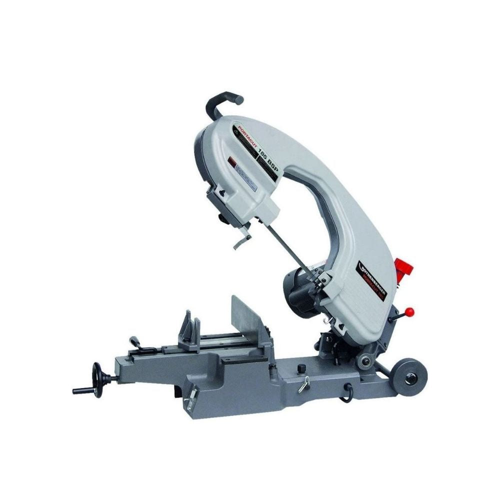 Sierra de cinta ligera y precisa para obra y talleres de hasta 180 mm. Para cortes en angulos rectos y de 45 grados. Incluye 2 hojas de sierra de banda HSS Bi- metal 14 TPI